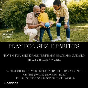 In October, our prayer line is dedicated to single parents. Join us for 30 minutes of prayer and encouragement—no registration needed, just dial in and be uplifted!